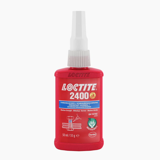 LOCTITE 2400, vibrasyon kaynaklı gevşemenin önlenmesi için, cıvata, somun ve saplamaları sağlamlaştırarak sızdırmazlık sağlamak için geliştirilmiş orta mukavemetli vida gevşemezlik ürünüdür. Tüm metallerde ve pasif yüzeylerde etkilidir. Endüstriyel yağ, korozyon önleyici yağ ve kesme sıvıları kaynaklı az miktardaki yüzey kirliliğine karşı dayanıklıdır. LOCTITE 2400’de tehlike sembolü, risk veya güvenlik ifadesi ve beyan edilebilir karsinojen, mutajen veya reprodüktif toksin bulunmaz.